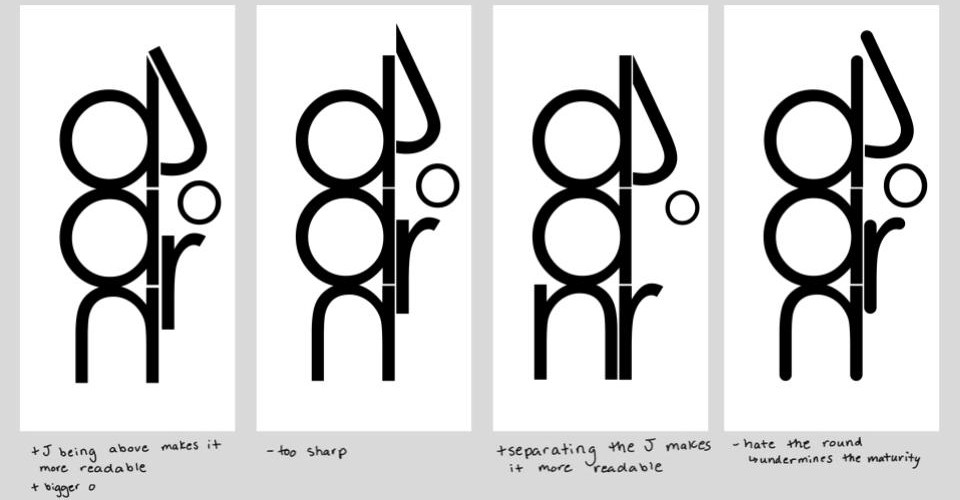 This project's objective was to convey a feeling using only the characters of your name, black and white. I used Adobe Illustrator to arrive at this final result (check out my process below). Here is "introspection and nostalgia." (It is now my personal logo)